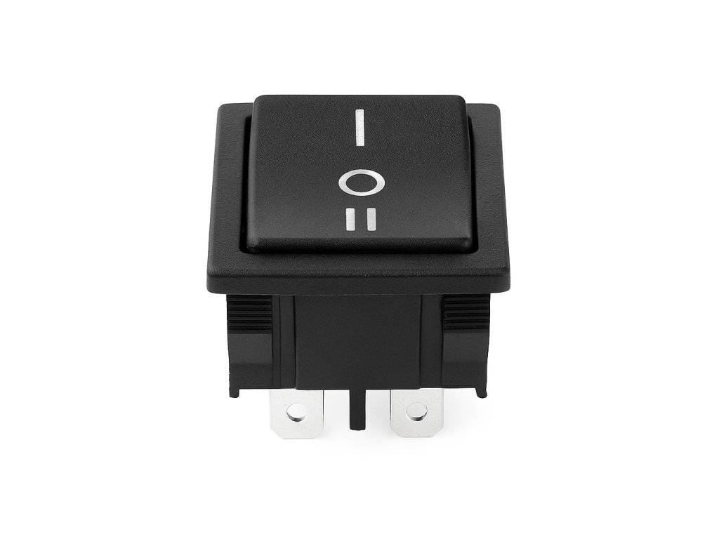 Typ obvodu: DPDT (dvojpólový, trojpoloha) – spíná/rozpíná dva nezávislé vodiče současně